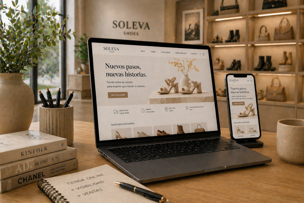 Es una página web pensada para vender productos por internet de forma clara, profesional y bien organizada. El diseño de una tienda online o ecommerce se enfoca en mostrar los productos de manera atractiva, facilitar la navegación, generar confianza durante la compra y ofrecer una experiencia cómoda tanto en ordenador como en móvil.